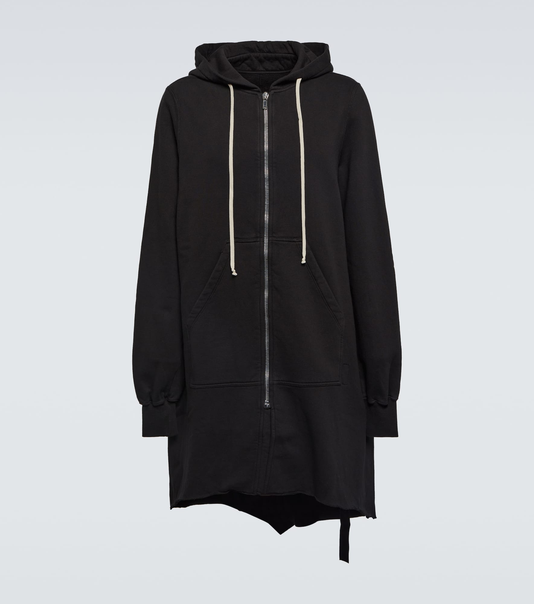 Brand enthusiasts view the DRKSHDW line as an entry point to Rick Owen's subversive design universe. Presented in a street-ready black shade, this hoodie showcases comfortable style with an oversized, cotton jersey construction and high-low hem. Product Details - Material: 100% organic cotton - Care instructions: hand wash - Made in Italy - Designer color name: Black - Drawstring hood - Closure: zipped front - Pockets: kangaroo pocket - Item number: P00837979 Size & Fit - True to size - Oversized - Mid-weight material - The model in the picture is 185cm-6'1" and wearing a size M