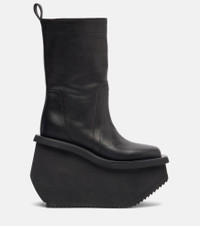 These Factory ankle boots are crafted in Italy from leather. In true Rick Owens style, the hardy pair rest on distinctively sculpted platform heels and feature pull tabs on the back for easy on and off. Product Details - Upper: calf leather - Lining: leather - Sole: leather insole, rubber sole - Toe shape: square toe - Made in Italy - Includes: shoe box, dust bag - Designer color name: Black - Item color: black - Item number: P01097998 Size & Fit - True to size - European sizes - 10cm-4" platform (size EU 38) - 14cm-5.5" wedge heel (size EU 38)