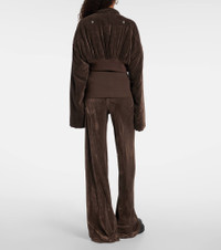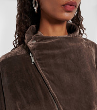 Subversive, edgy, yet minimal at once the Hollywood jacket from Rick Owens makes a bold statement. This cropped style features flared sleeves, ribbed-knit trim and an asymmetrical zip fastening. Product Details - Material: 82% viscose, 18% silk - Care instructions: dry clean - Made in Italy - Designer color name: Drkdust - Item color: brown - Material II: 100% virgin wool - Lining: 100% cupro - Filling: 100% polyester - Closure: zipper, snap-button fastenings - Hem: ribbed - Item number: P01068207 Size & Fit - True to size - Extra-long sleeves - Dropped shoulders - Cinched waist - Elasticated hem - Non-stretchy fabric - Cropped - The model seen in the picture is 178cm-5'10" and wearing a size IT 40