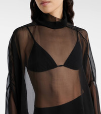 Product Details - Material: 100% silk - Care instructions: hand wash - Made in Italy - Designer color name: Black - Closure: buttoned back - Item number: P01018882 Size & Fit - True to size - One size: perfect fit for sizes S - XL - Dropped shoulders - Sheer - Oversized - Non-stretchy fabric - Falls below the hip