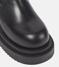These boots from Rick Owens are made from leather to an ankle-length silhouette with elasticated side panels. They have a rounded toe, toothed rubber soles, and pull tabs. Product Details - Sole: leather insole, rubber sole - Toe shape: round toe - Upper: leather - Comes with a box - Designer color name: Black - Made in Italy - Comes with dust bag - Closure: elasticated sides - Item number: P00818529 Size & Fit - Fits slightly large to size - we recommend trying a half size smaller - Wide - European sizes - 7cm-3" heel (size EU 38) - 4cm-1.5" platform (size EU 38)