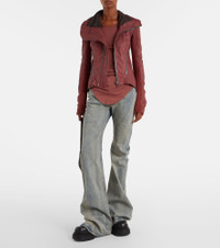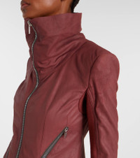 Aptly nicknamed The Lord of Darkness, Rick Owens brings gothic and industrial inspiration to avant-garde design. This sleek jacket is crafted from supple leather and features diagonal zipped pockets and a funnel neckline. Product Details - Material: 100% lamb leather - Care instructions: specialist clean - Made in Moldova - Designer color name: Rosewood - Item color: brown - Trim: 100% virgin wool - Lining: 100% cotton - Details: 100% water-buffalo horn - Contains non-textile parts of animal origin - Hardware color: silver - Closure: zipped front - Shoulder pads - Pockets: zipped pockets, internal pockets - Fully lined - Item number: P01068224 Size & Fit - True to size - Cinched waist - Partly stretchy fabric - Falls to the hip - Height of model is 180cm-71" and wears a size IT 40
