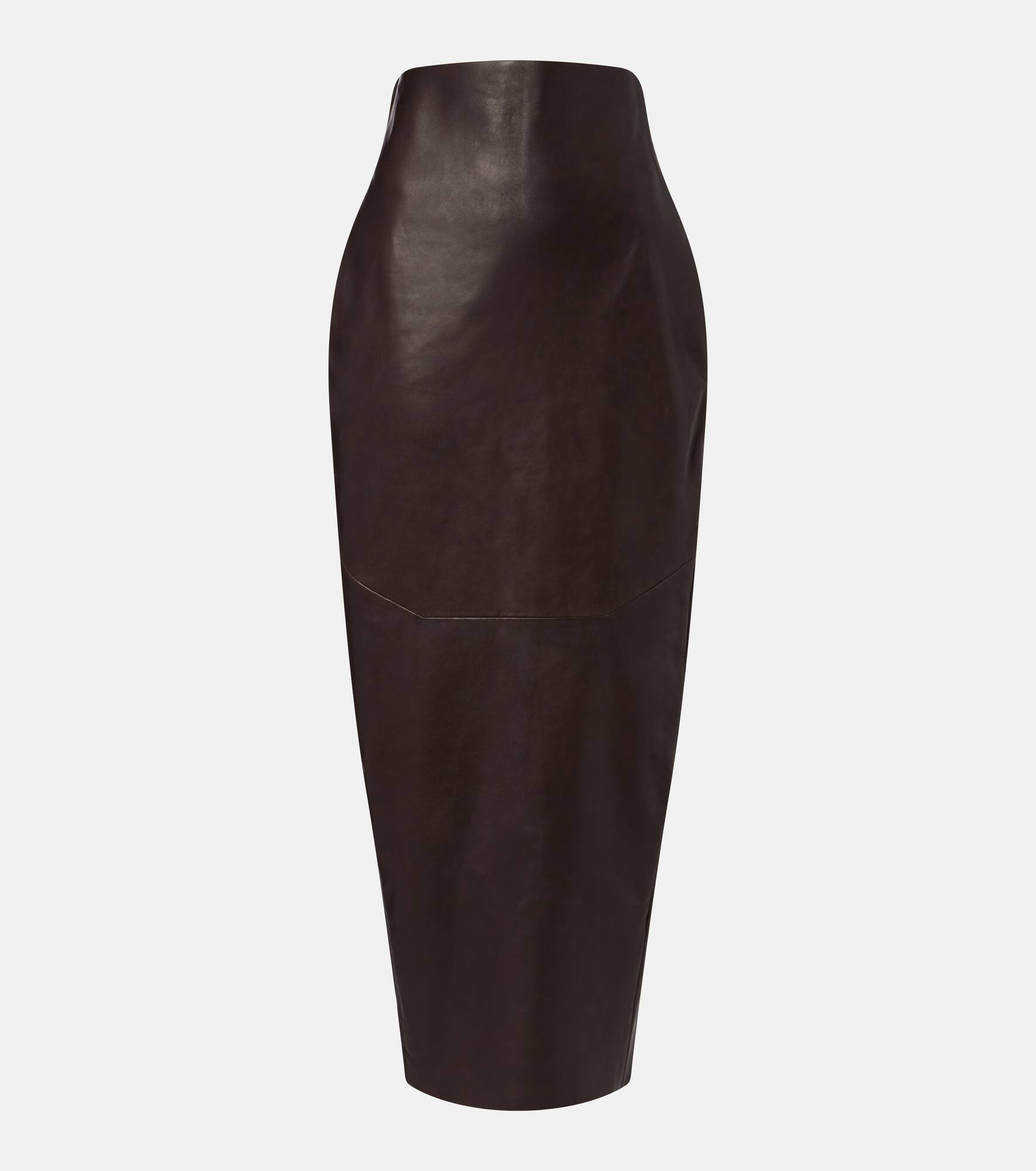 Expertly crafted from leather, this Rick Owens pencil skirt is a perfect example of the brand's urban approach to everyday clothing. This piece features a flattering high-rise waistline and a close-fitting silhouette. Product Details - Material: 100% lamb leather - Care instructions: specialist clean - Made in Moldova - Designer color name: Drkdust - Item color: brown - Lining: 94% cupro, 6% elastane - Closure: zipped front - Long vent - Half-lined - Item number: P01068298 Size & Fit - True to size - Non-stretchy fabric - High-waisted - slit length 68cm-27" - The model seen in the picture is 178cm-5'10" and wearing a size IT 40