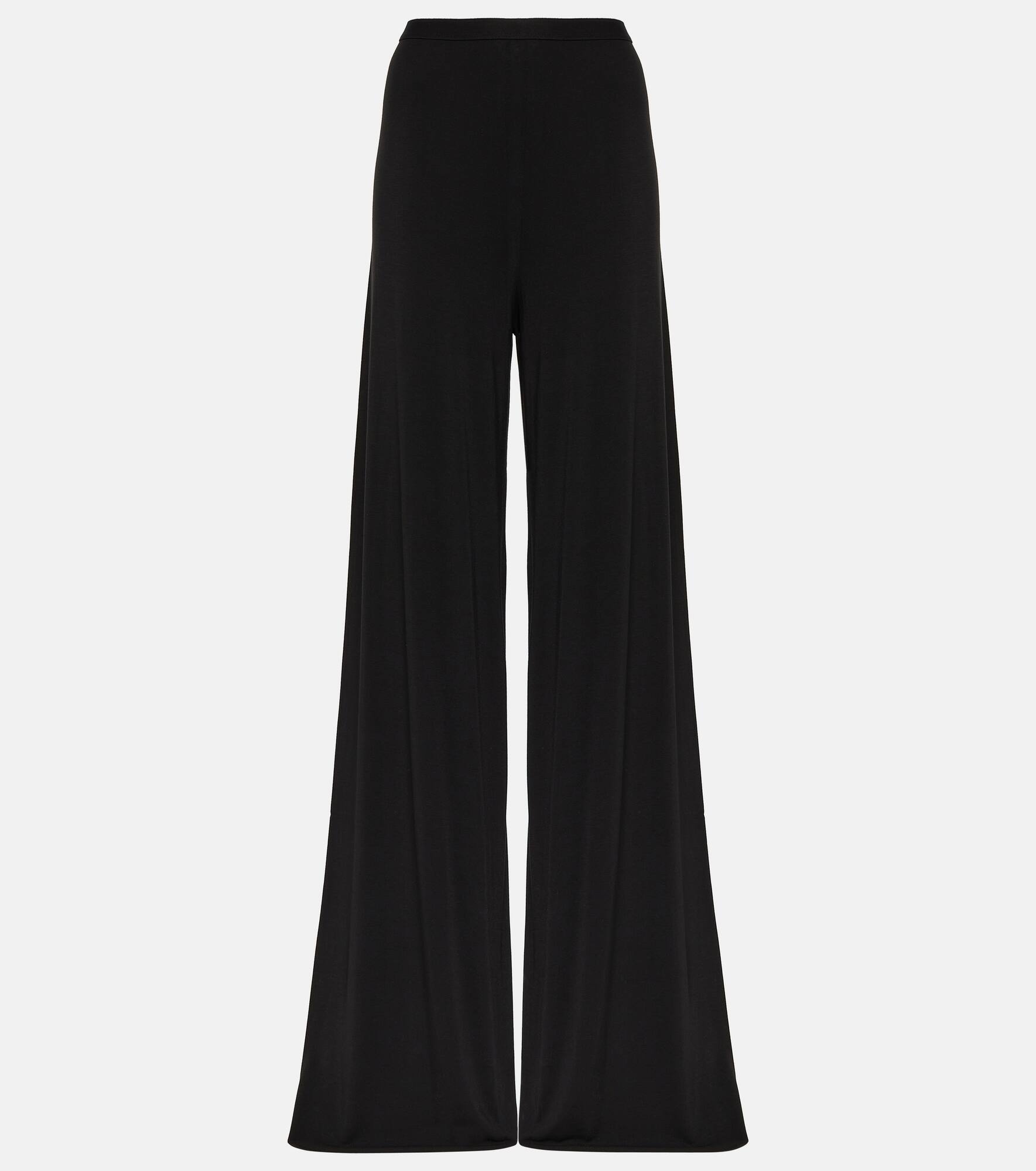 These pants from Rick Owens’ Lilies line will be a staple in your urban-grunge wardrobe. The flowy style has a high-rise waist and wide legs. Product Details - Material: 82% modal, 10% cashmere, 8% elastane - Care instructions: hand wash - Made in Italy - Designer color name: Black - Item number: P00856104 Size & Fit - True to size - Elasticated waist - Lightweight material - Stretchy fabric - Wide-leg - High-waisted - The model seen in the picture is 178cm-5'10" and wearing a size IT 40
