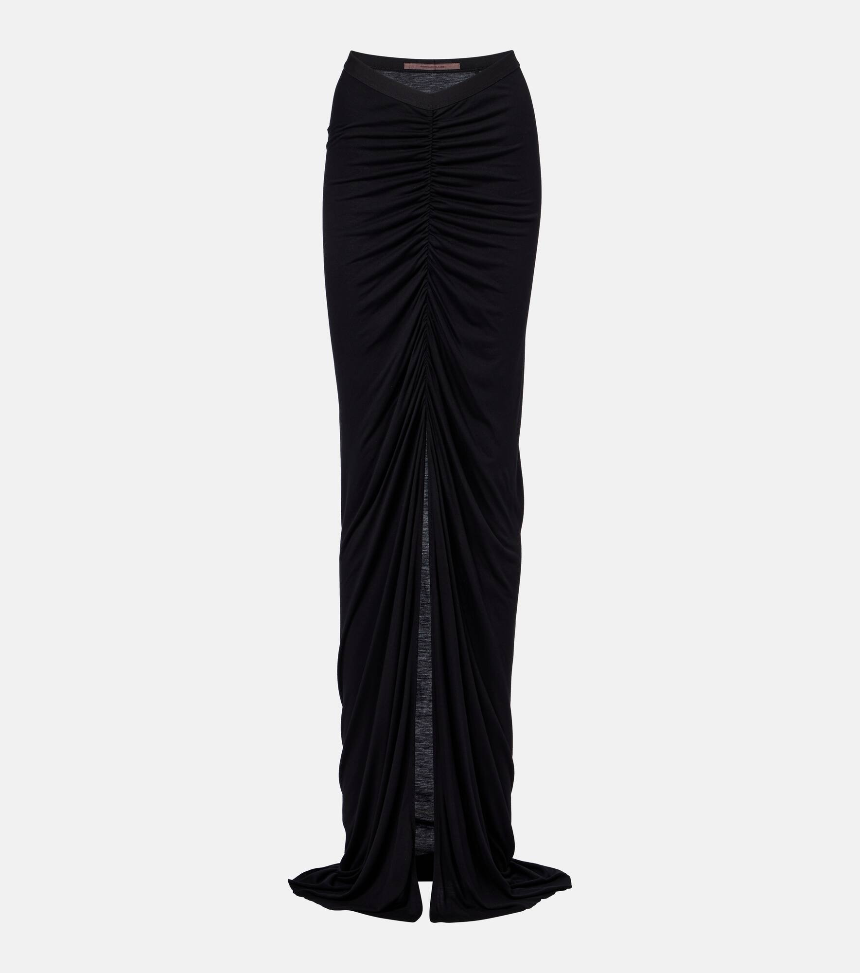 Rick Owens brings gothic and industrial inspiration to avant-garde design. The Poppy LS jersey maxi skirt is tailored to a floor-length, ruched silhouette and flatters the figure with its deep front slit. Product Details - Material: 100% viscose - Care instructions: hand wash - Made in Italy - Designer color name: Black - Item color: black - Elasticated waistband - Short vent - Item number: P01099173 Size & Fit - True to size - Elasticated waist - Stretchy fabric - The model seen in the picture is 178cm-5'10" and wearing a size IT 40