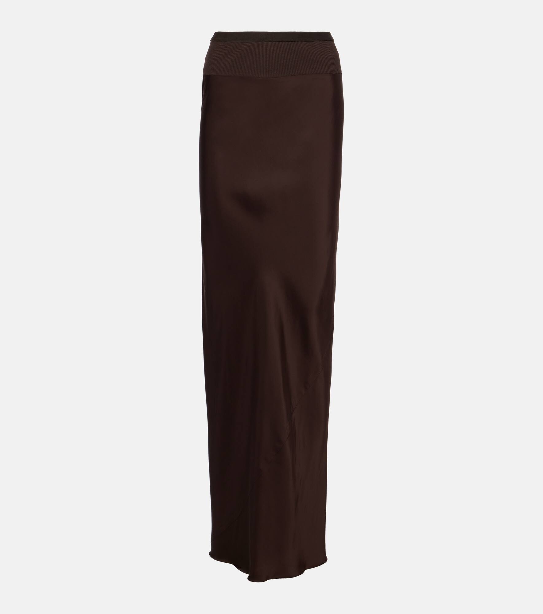 Ribbed Cotton-blend Trimmed Charmeuse Maxi Skirt