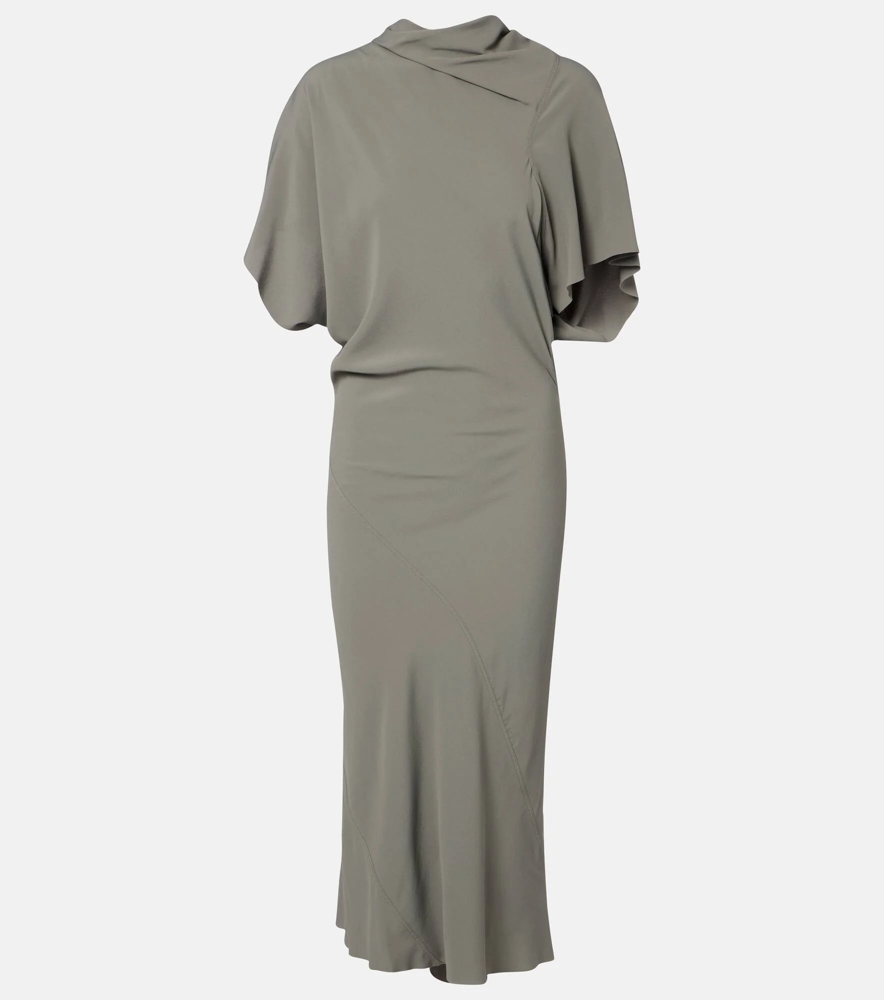 The Seb midi dress from Rick Owens embodies the industrial aesthetic that the brand channels in its designs. Crafted with a touch of silk for added softness, this piece features elegant draping. Product Details - Material: 64% acetate, 36% silk - Care instructions: dry clean - Made in Italy - Color: grey - Designer color name: Euca - Item color: gray - Item number: P01137304 Size & Fit - True to size - Cinched waist - Non-stretchy fabric - The model seen in the picture is 178cm-5'10" and wearing a size IT 40