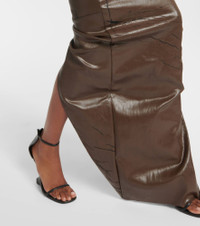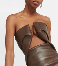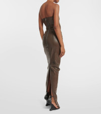 Make an impression at your next event in this gown from Rick Owens. Made from coated denim, the strapless style features a cutout in the front for a stunning touch. Product Details - Made in Italy - Material: 3% elastane, 91% cotton, 6% elastomultiester - Lining: 97% cotton, 3% elastane - Designer color name: Brown - Care instructions: specialist clean - Closure: zipped back - Item number: P00839931 Size & Fit - Fits small to size - we recommend trying one size larger - Strapless - Fitted - Mid-weight material - Stiff material - The model seen in the picture is 178cm-5'10" and wearing a size IT 42