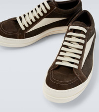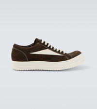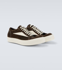 A signature Rick Owens silhouette, these Vintage sneakers are crafted in supple suede with contrast paneling. Made in Italy, the pair comes with round toes and durable rubber soles. Product Details - Upper: leather (suede) - Lining: leather - Sole: leather insole, rubber sole - Toe shape: round toe - Made in Italy - Includes: shoe box - Designer color name: Milk/Milk - Item color: brown, white - Item number: P01057216 Size & Fit - True to size - Half sizes please take the next size up - European sizes