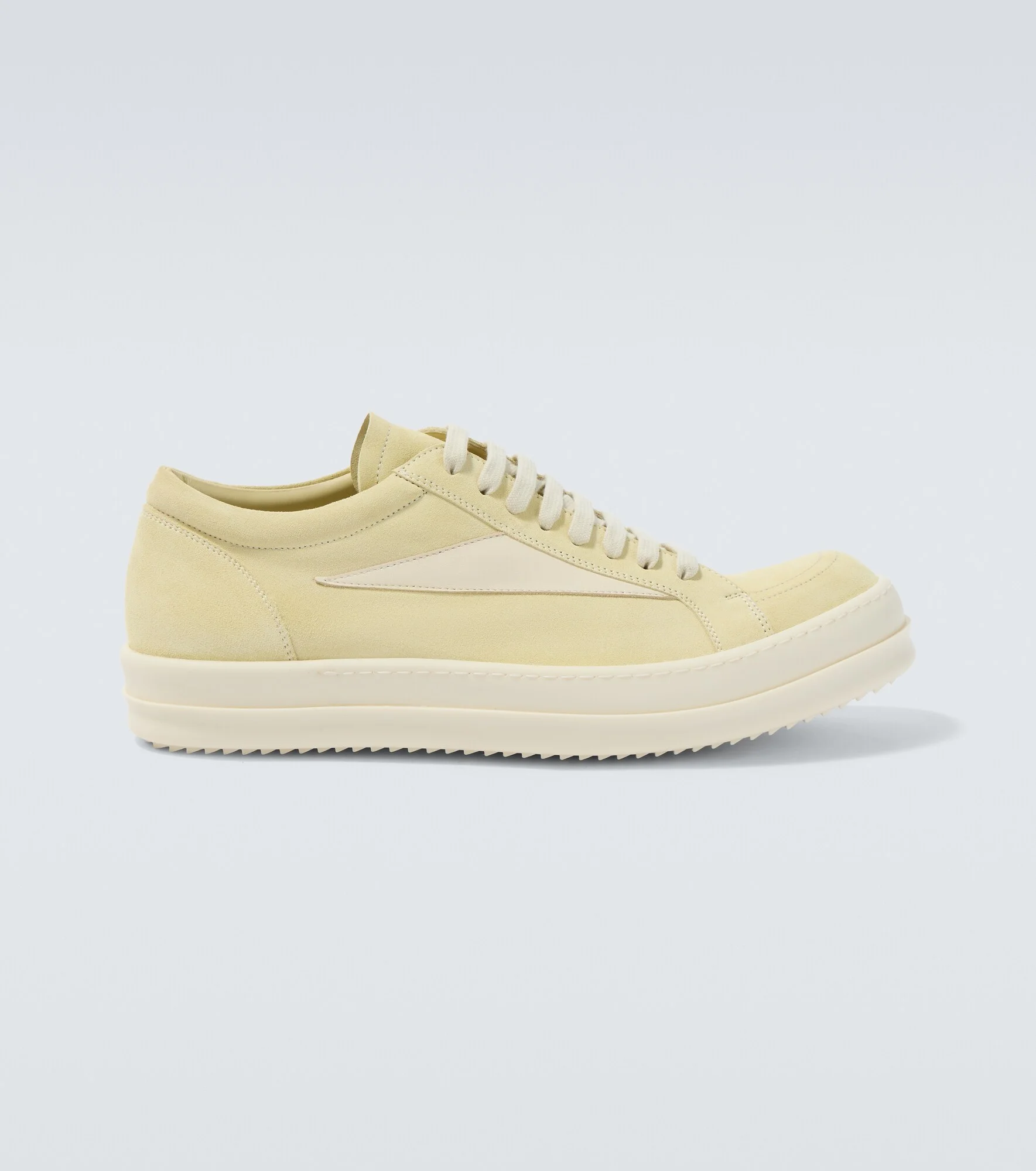Footwear from Rick Owens brings a modern edge to your collection. Crafted from suede, the Vintage sneakers come in a low-top silhouette and feature chunky rubber soles. Product Details - Upper: leather (suede) - Lining: leather - Sole: leather insole, rubber sole - Color: yellow - Toe shape: round toe - Made in Italy - Includes: dust bag, shoe box - Designer color name: Butter/Milk/Milk - Item number: P01137757 Size & Fit - True to size - Half sizes please take the next size up - European sizes
