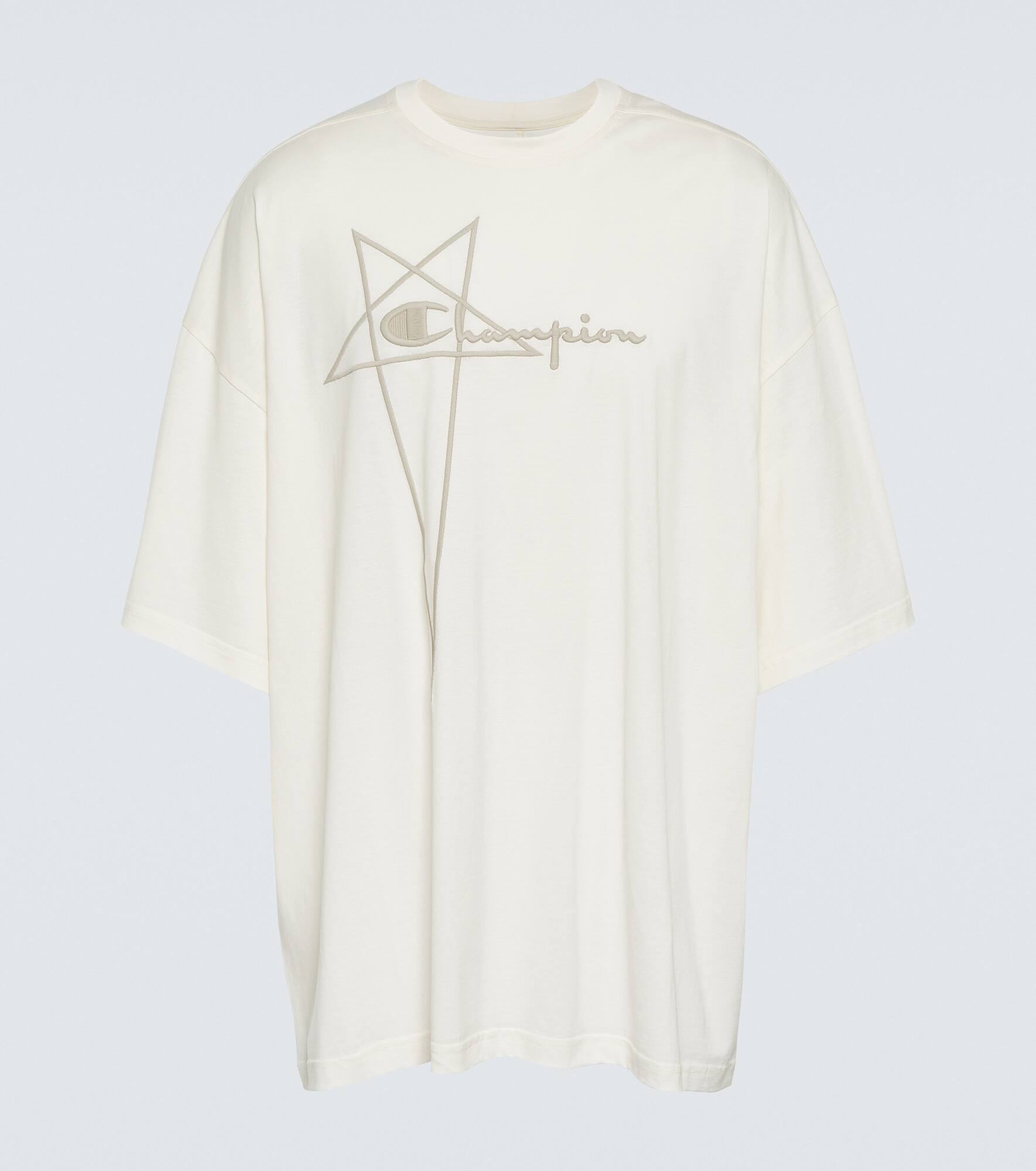 An essential to every wardrobe, this T-shirt from Rick Owens x Champion® will have you wearing it time and time again. This piece is crafted from breathable cotton for all-day wear. Product Details - Material: 100% cotton - Care instructions: hand wash - Made in Italy - Designer color name: Milk - Item number: P00819078 Size & Fit - Fits large to size - we recommend trying one size smaller - Designed for an extremely oversized fit - Dropped shoulders - Mid-weight material - Falls below the hip - The model in the picture is 185cm-6'1" and wearing a size S