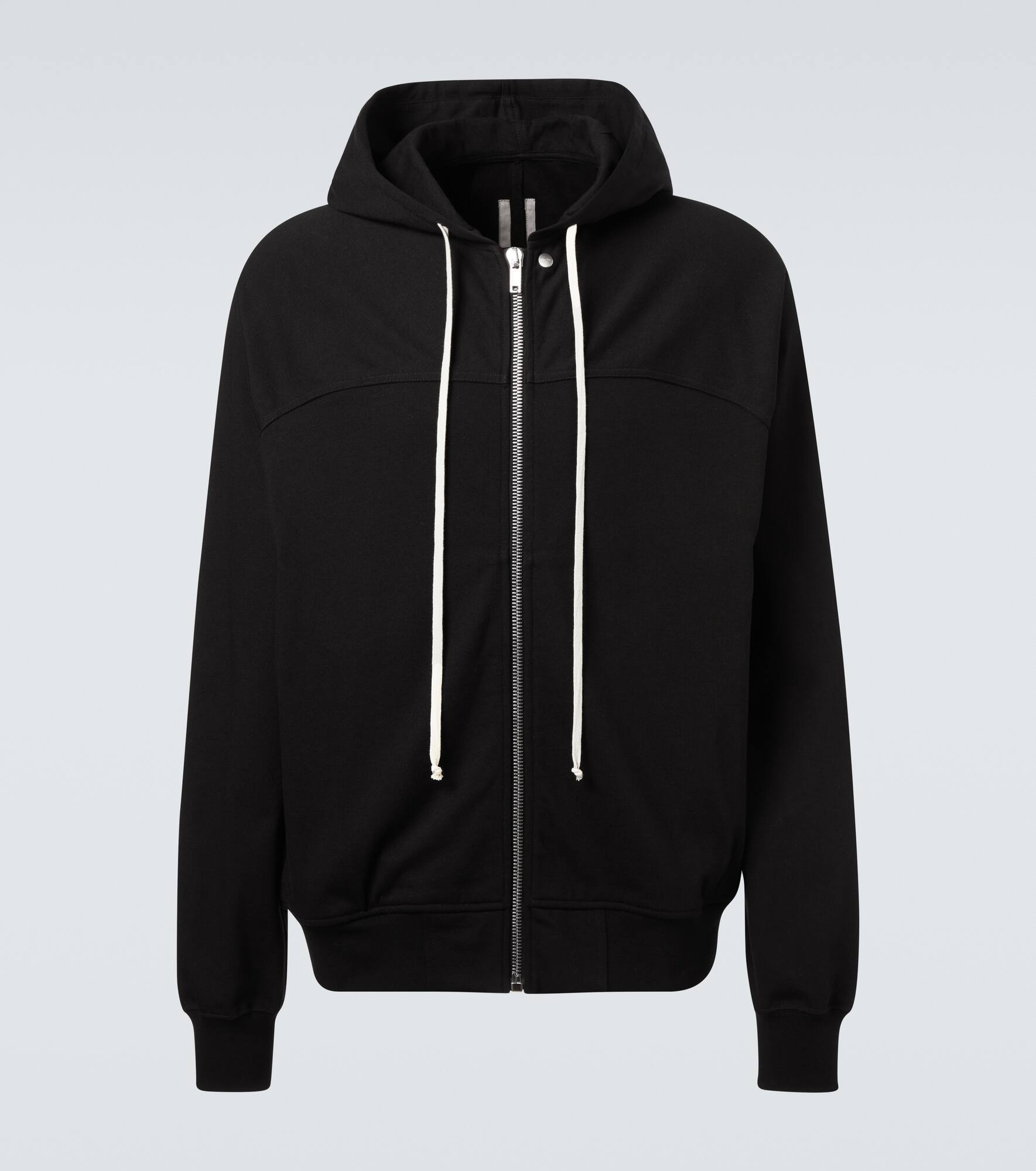 Aptly nicknamed The Lord of Darkness, Rick Owens brings gothic and industrial inspiration to avant-garde design. Crafted from cotton jersey, this hoodie features a zip-up style and a drawstring hood. Product Details - Material: 100% cotton - Care instructions: hand wash - Made in Italy - Designer color name: Black - Item color: black - Drawstring hood - Item number: P01036887 Size & Fit - True to size - Designed for a loose fit - Slightly stretchy fabric - Falls to the hip - Height of model is 189cm-74.5" and wears a size L