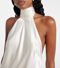 The Rixo Capucine minidress is made from pure silk satin and features a halterneck self-tie and a low open back. Fully lined, the design has an elegant sheen, perfect for parties and other occasions. Product Details - Material: 100% silk - Care instructions: dry clean - Made in China - Designer color name: Champagne - Item color: white - Lining: 100% viscose - Self-tie neck - Fully lined - Item number: P01039601 Size & Fit - True to size - Low back - Semi-sheer - Cinched waist - Non-stretchy fabric - The model seen in the picture is 178cm-5'10" and wearing a size XS