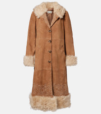 Known for their vintage-inspired designs, Rixo delivers unmatched charm and quality construction. The Cienna suede coat, with its embroidered lapels and shearling trims, is the brand's take on the iconic Penny Lane design. Product Details - Material: 100% leather (suede) - Care instructions: specialist clean - Made in Mauritius - Designer color name: Brown - Item color: brown - Lining: 100% viscose - Trim: 100% shearling - Closure: buttoned front - Pockets: welt pockets - Item number: P01114252 Size & Fit - True to size - For broader shoulders we recommend taking one size up - Designed for a loose fit - Non-stretchy fabric - The model seen in the picture is 178cm-5'10" and wearing a size XS