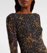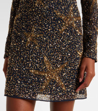 The Ilse minidress from Rixo is synonymous with glamour and glitz. The navy design features a glimmering sequined embellishment, gold-toned starfish motifs, long sleeves, and a flattering boat neck. Product Details - Material: 100% polyester - Care instructions: dry clean - Made in India - Designer color name: Starfish Embellishment Navy - Item color: blue, gold - Lining: 100% viscose - Fully lined - Item number: P01104152 Size & Fit - True to size - Low back - Straight fit - Slightly stretchy fabric - The model seen in the picture is 178cm-5'10" and wearing a size XS