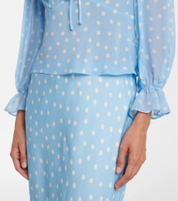 Forget the endless search for hidden gems, Rixo vintage-inspired designs capture the magic of rare finds. Blue polka-dots define the Lasca top: a playful design made from silk with long, frilled sleeves. Product Details - Material: 100% silk - Care instructions: dry clean - Made in China - Designer color name: Light Blue Mini Polka Dots - Item color: blue - Material II: 100% viscose - Closure: zipped side, concealed zipper - Self-tie collar - Cuff: frilled - Hem: elasticated - Item number: P01084147 Size & Fit - True to size - Semi-sheer - Cinched waist - Non-stretchy fabric - Slightly cropped - The model seen in the picture is 178cm-5'10" and wearing a size XS