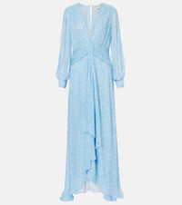 Rixo’s Meera gown features a polka-dot motif and a V-neck. Detailed with a shirred hem for subtle texture, this flowing silhouette is complete with a zip and button fastening at the back. Product Details - Material: 100% viscose - Care instructions: dry clean - Made in China - Designer color name: Light Blue Mini Polka Dots - Item color: blue, white - Lining: 100% polyester - Collar: V-neck - Closure: zip and button fastening - Short vent - Cuff: three buttons - Hem: shirred - Item number: P01084151 Size & Fit - Fits large to size - we recommend trying one size smaller - Cinched waist - Non-stretchy fabric - The model seen in the picture is 178cm-5'10" and wearing a size XXS