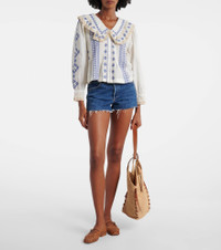 The Percy blouse from Rixo is a vintage-inspired design you'll find yourself wearing on repeat. Made from cotton with contrasting embroidery throughout, this pretty piece is defined by an oversized Peter Pan collar and delicate lace trims. Product Details - Material: 100% cotton - Care instructions: hand wash - Made in India - Designer color name: Mila Embroidery Cream - Item color: white - Closure: buttoned front - Cuff: buttoned - Item number: P01084140 Size & Fit - True to size - Designed for a loose fit - Non-stretchy fabric - Slightly cropped - The model seen in the picture is 178cm-5'10" and wearing a size XS
