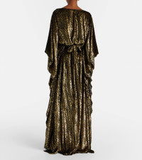 Exude bold glamour in this kaftan from Roberto Cavalli. Crafted in Italy, the flowing design is rendered in a shimmering leopard-print and cinched at the waist for a softly draped fit. Product Details - Material: 41% viscose, 37% polyester, 22% silk - Care instructions: dry clean - Made in Italy - Color: black - Designer color name: Black/Gold - Item color: black, gold - Side slits - Detachable belt - Includes: dust bag - Item number: P01132844 Size & Fit - True to size - Adjustable at the waist - Oversized - Non-stretchy fabric - The model seen in the picture is 178cm-5'10" and wearing a size IT 40