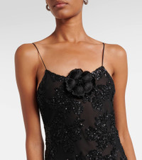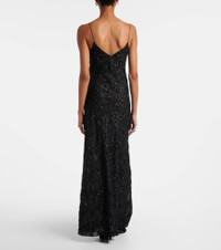 Appliquéd Sequin-embellished Silk-trimmed Voile Gown
