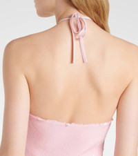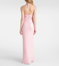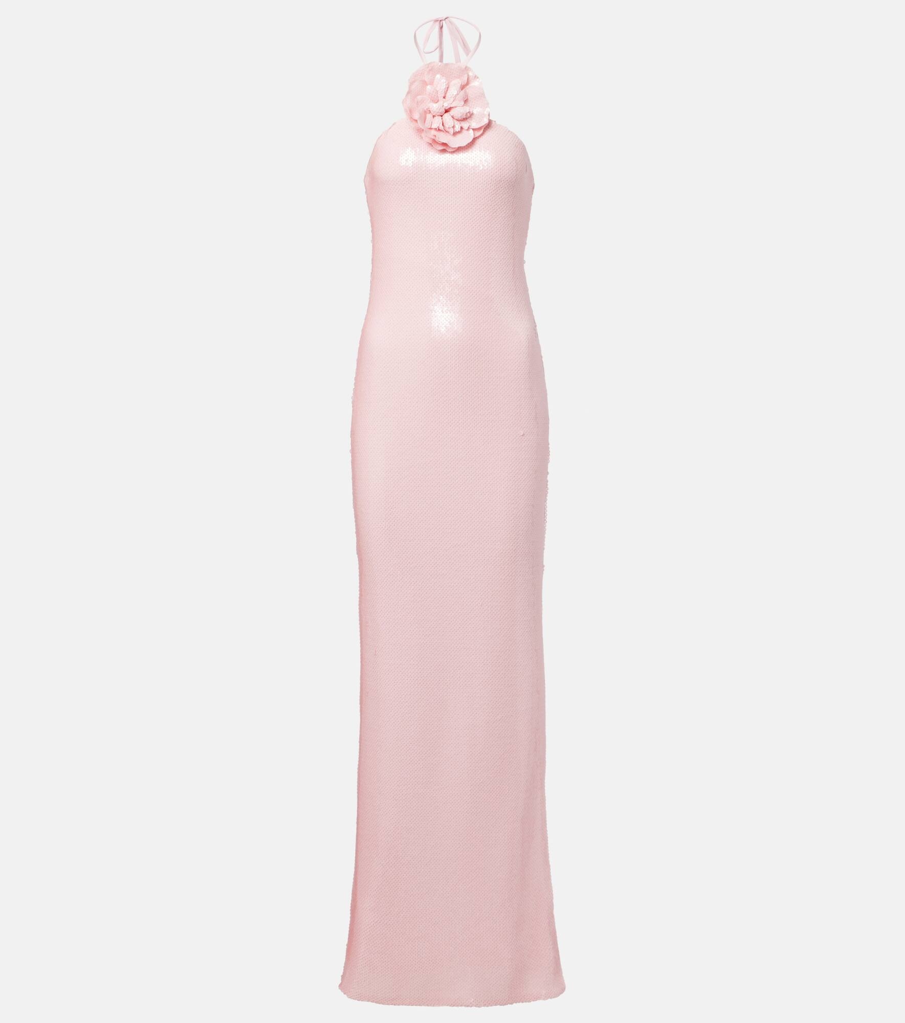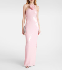 Rodarte puts romance and storytelling at the forefront of its designs. Featuring allover sequin detailing, this column gown is defined by elegant tie-neck closure and an eye-catching floral applique. Product Details - Material: 100% polyester - Care instructions: dry clean - Made in the USA - Designer color name: Pink - Item color: pink - Lining: 91.5% silk, 8.5% elastane - Details: 50% polyester, 50% silk - Closure: zipped side - Item number: P01023693 Size & Fit - True to size - Low back - Fitted - Non-stretchy fabric - The model seen in the picture is 178cm-5'10" and wearing a size US 4