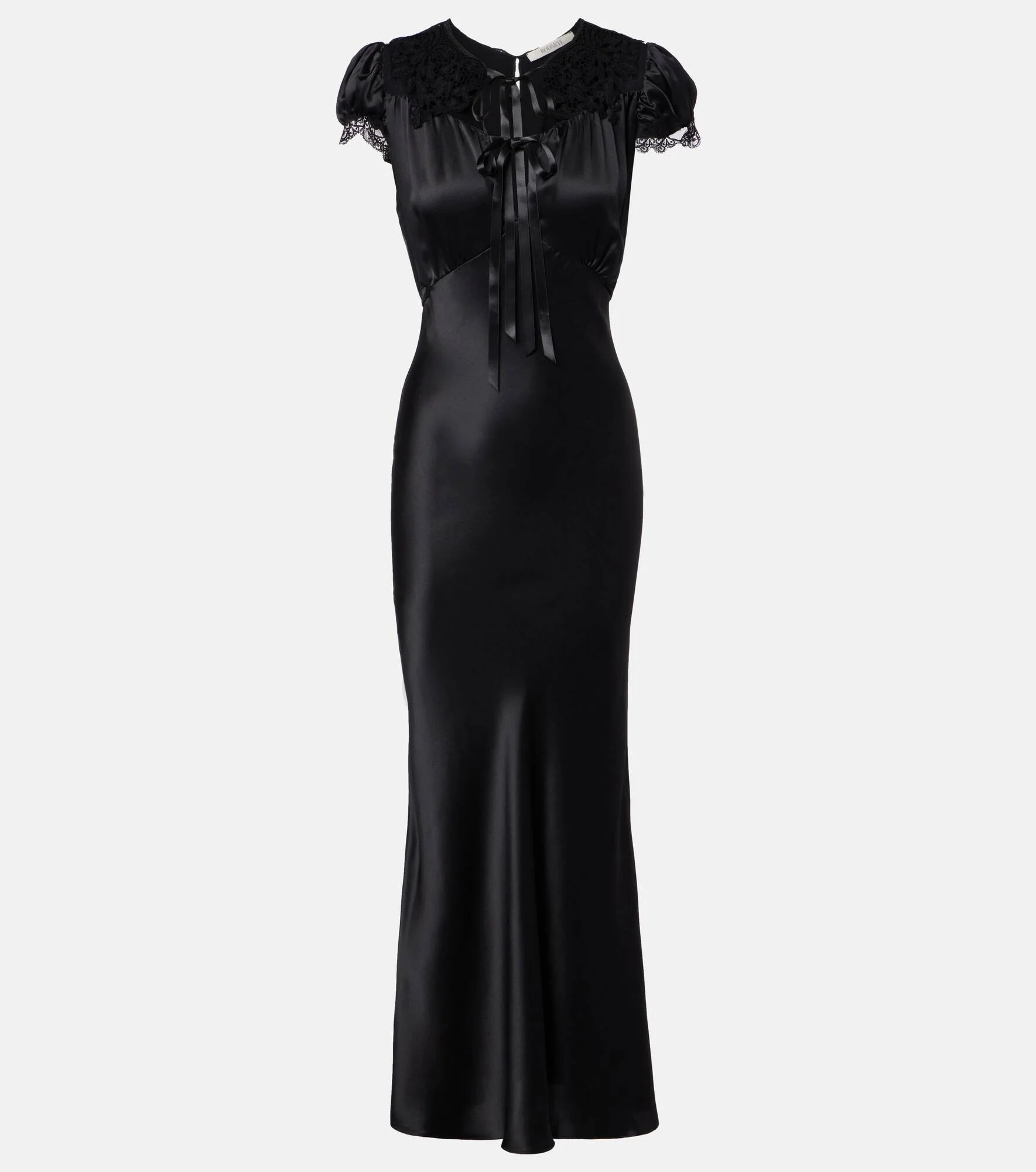 Rodarte puts romance and storytelling at the forefront of its grand and mesmerizing designs. Made from lustrous silk satin, this maxi dress comes with a self-tie neckline and delicate lace trims. Product Details - Material: 100% silk - Care instructions: dry clean - Made in the USA - Designer color name: Black - Item color: black - Trim: 42% cotton, 33% polyamide, 25% polyester - Self-tie neck - Attached belt - Item number: P01090185 Size & Fit - True to size - Cinched waist - Non-stretchy fabric - The model seen in the picture is 178cm-5'10" and wearing a size US 4