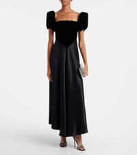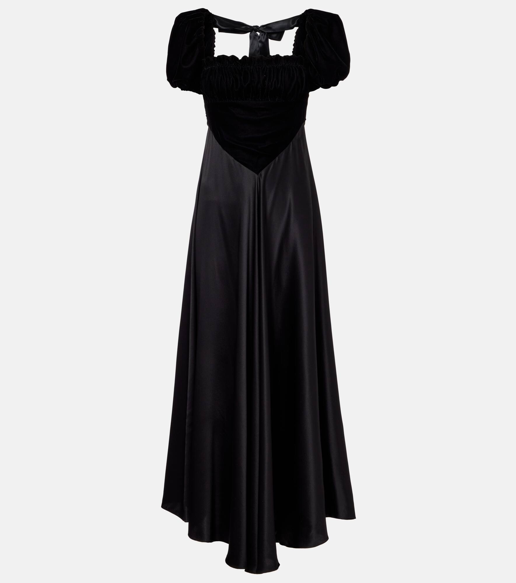 Rodarte puts romance and storytelling at the forefront of its grand and mesmerizing designs. This elegant maxi dress features a fluid silk satin skirt, sculpting velvet bodice, lightly puffed sleeves, and a delicate bow-detailed back closure. Product Details - Material: 100% silk - Care instructions: dry clean - Made in the USA - Designer color name: Black - Item color: black - Material II: 100% polyester - Lining: 75% silk, 25% nylon - Closure: concealed zipped back - Self-tie back - Hem: uneven - Item number: P01090180 Size & Fit - True to size - Oversized shoulders - Cinched waist - Non-stretchy fabric - The model seen in the picture is 178cm-5'10" and wearing a size US 4