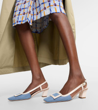 Belle Vivier Lacquered Buckle Slingback Pumps in Denim
