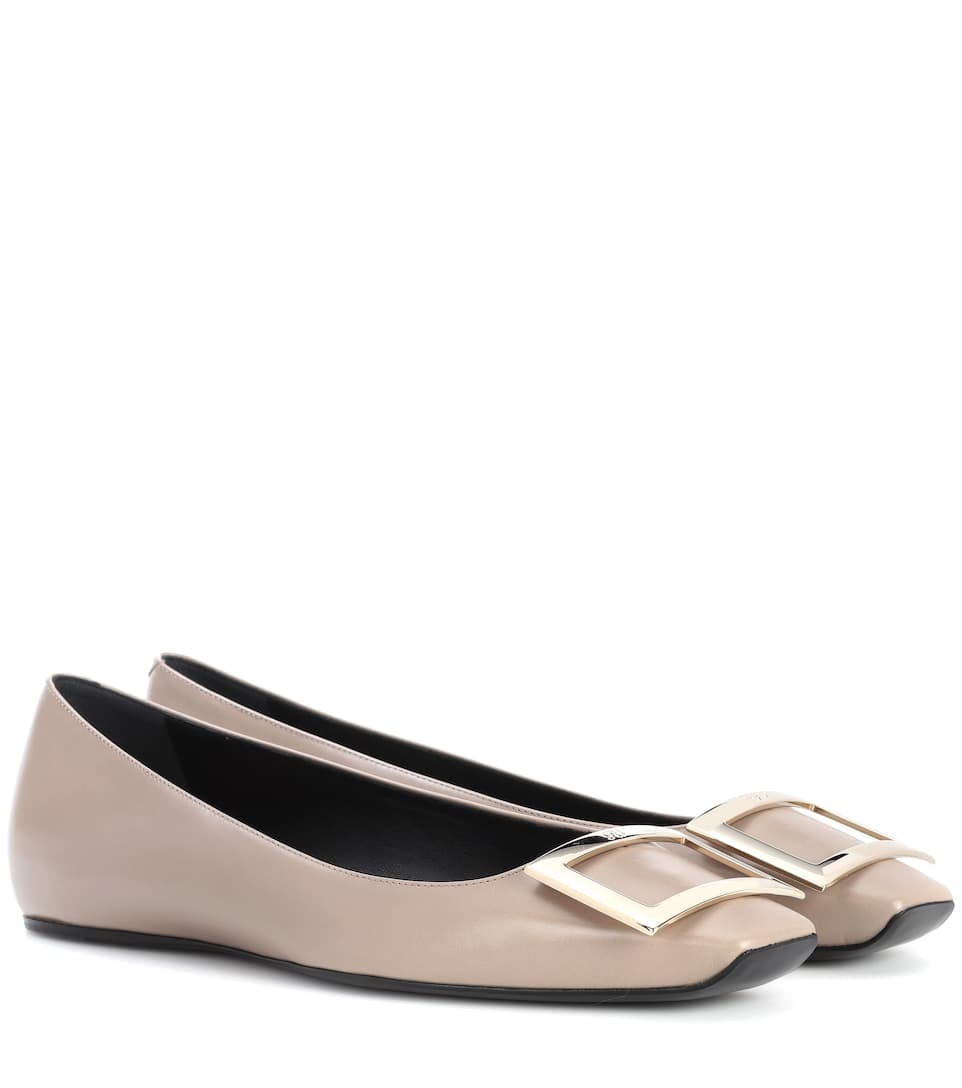 Evolve with the season and opt for a demure footwear favorite from Roger Vivier: the Belle Vivier ballet flats in taupe gray. Crafted from smooth leather and finished with a sleek buckle accent, these beauties will ensure any wardrobe has a touch of sophistication. Product Details - Upper: buffalo leather - Sole: leather insole and sole - Toe shape: square toe - Made in Italy - Item number: P00281875 Size & Fit - Fits slightly large to size - we recommend trying a half size smaller - European sizes