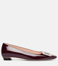 This season sees Roger Vivier update its edit of elegant ballet flats in this chic burgundy shade. The shiny patent leather gives the square-toed silhouette an instant dose of contemporary cool, while the golden buckle is a house signature. Product Details - Upper: leather - Lining: leather - Sole: leather insole and sole - Toe shape: square toe - Made in Italy - Includes: dust bag - Designer color name: Bordeaux Scuro - Item color: burgundy - Hardware color: gold - Item number: P01082833 Size & Fit - True to size - European sizes - 2,5cm-1" heel (size EU 38)