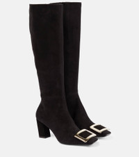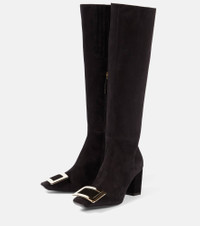 Roger Vivier’s ever-present buckle draws upon the notion of jewelry for the feet. The iconic adornment appears on these black suede Belle Vivier knee-high boots. Product Details - Comes with dust bag - Sole: leather insole and sole - Closure: zipped side - Upper: leather - Designer color name: Nero - Made in Italy - Comes with a box - Toe shape: square toe - Item number: P00834351 Size & Fit - True to size - European sizes - 7cm-3" heel (size EU 38) - 38cm-15" shaft height (size EU 38) - 34cm-13.5" shaft width (size EU 38) - shaft width measured on largest part of boot