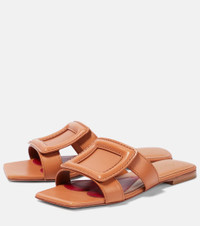 Roger Vivier’s ever-present buckle draws upon the notion of jewelry for the feet. These calfskin sandals feature square open toes, padded heart insoles, and tonal topstitching across the geometric vamp straps. Product Details - Lining: leather - Sole: leather insole, leather and rubber sole - Upper: leather - Comes with a box, Comes with dust bag - Toe shape: square open toe - Made in Italy - Item number: P00790407 Size & Fit - True to size - European sizes - 1,5cm-0.5" heel (size EU 38)