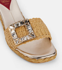 Roger Vivier’s ever-present buckle draws upon the notion of jewelry for the feet. Here in sparkling crystals, it adorns the vamps of these jute-trimmed raffia mules. Product Details - Upper: raffia - Lining: leather - Sole: leather insole, rubber sole - Toe shape: square open toe - Made in Italy - Includes: shoe box, dust bag - Designer color name: Crema Chiaro - Item color: gold - Hardware color: gold - Item number: P01048181 Size & Fit - True to size - Best fit for narrow feet - Half sizes please take the next size up - European sizes - 3cm-1" heel (size EU 38) - 1,5cm-0.5" platform (size EU 38)