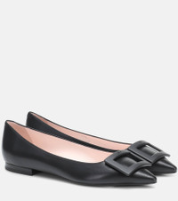 Rendered in timeless black, the Gommettine Ball ballet flats from Roger Vivier offer a contemporary take on a classic shoe style. This pointed-toe silhouette has been crafted in Italy from shiny leather and features the label's signature buckle-inspired embellishment in tonal black. Product Details - Lining: leather - Sole: leather insole, rubber sole - Toe shape: pointed toe - Upper: leather - Comes with a box - Designer color name: Nero - Made in Italy - Comes with dust bag - Item number: P00446367 Size & Fit - True to size - For narrow feet, we recommend trying a half size smaller - Wide - European sizes - 1,5cm-0.5" heel (size EU 38)