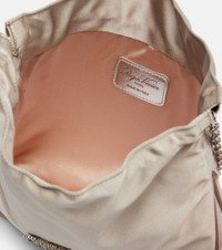 Carry the essentials and more in the Pilgrim bucket bag from Roger Vivier. The Mini design is crafted from satin and adorned with the brand's signature crystal-embellished buckle. Product Details - Material: fabric, crystals - Lining: fabric - Made in Italy - Designer color name: Grigio Perla - Item color: gray - Chain shoulder strap - Includes: dust bag, box - Item number: P01058811 Size & Fit - Height 22cm-8.5" - Width 24cm-9.5" - Depth 4,5cm-2" - Chain length 54cm-21.5"