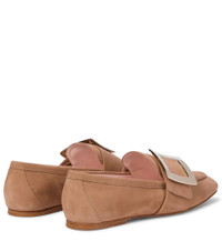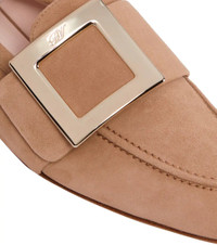Crafted in Italy from soft suede, this pair of Roger Vivier loafers come in beige and are accented the label's signature squared buckle in gold tone. Product Details - Lining: leather - Toe shape: round toe - Upper: goat leather - Sole: leather insole, leather and rubber sole - Made in Italy - Designer color name: Cognac - Item number: P00591224 Size & Fit - Fits slightly large to size - we recommend trying a half size smaller - European sizes
