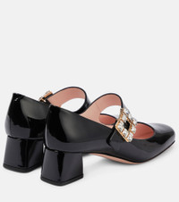 A glamorous take on classic Mary Jane silhouettes, Roger Vivier's Très Vivier Babies pumps have sparkling strass buckles on their straps. They're made in Italy from patent leather and set atop the brand's angled 45mm block heels. Product Details - Lining: leather - Closure: buckle fastening - Sole: leather insole and sole - Toe shape: square toe - Upper: leather - Designer color name: Nero - Comes with a box, Comes with dust bag - Made in Italy - Item number: P00770830 Size & Fit - Fits slightly large to size - we recommend trying a half size smaller - European sizes - 4,5cm-2" heel (size EU 38)