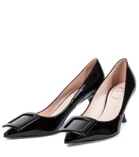 These black Viv' In The City pumps are a modern addition to Roger Vivier's buckle-adorned footwear family. Made in Italy from patent leather, they have a point-toe silhouette with tonal buckle embellishments, which are a house signature, and sculptural 65mm heels. Product Details - Lining: leather - Sole: leather insole and sole - Upper: calf leather - Toe shape: pointed toe - Comes with a box - Designer color name: Nero - Made in Italy - Item number: P00556761 Size & Fit - True to size - For narrow feet, we recommend trying a half size smaller - European sizes - 6,5cm-2.5" heel (size EU 38)