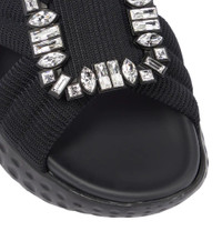 The Viv' Run sandals from Roger Vivier have mesh cross-over uppers and cushioned rubber soles. They're topped with brand-signature crystal-embellished buckles. Product Details - Toe shape: round open toe - Trim: leather, crystal - Sole: fabric insole, rubber sole - Comes with a box - Lining: fabric - Designer color name: Nero - Made in Italy - Comes with dust bag - Upper: fabric - Item number: P00725144 Size & Fit - True to size - Half sizes please take the next size up - European sizes - 3,5cm-1.5" platform (size EU 38) - 7cm-3" wedge heel (size EU 38)