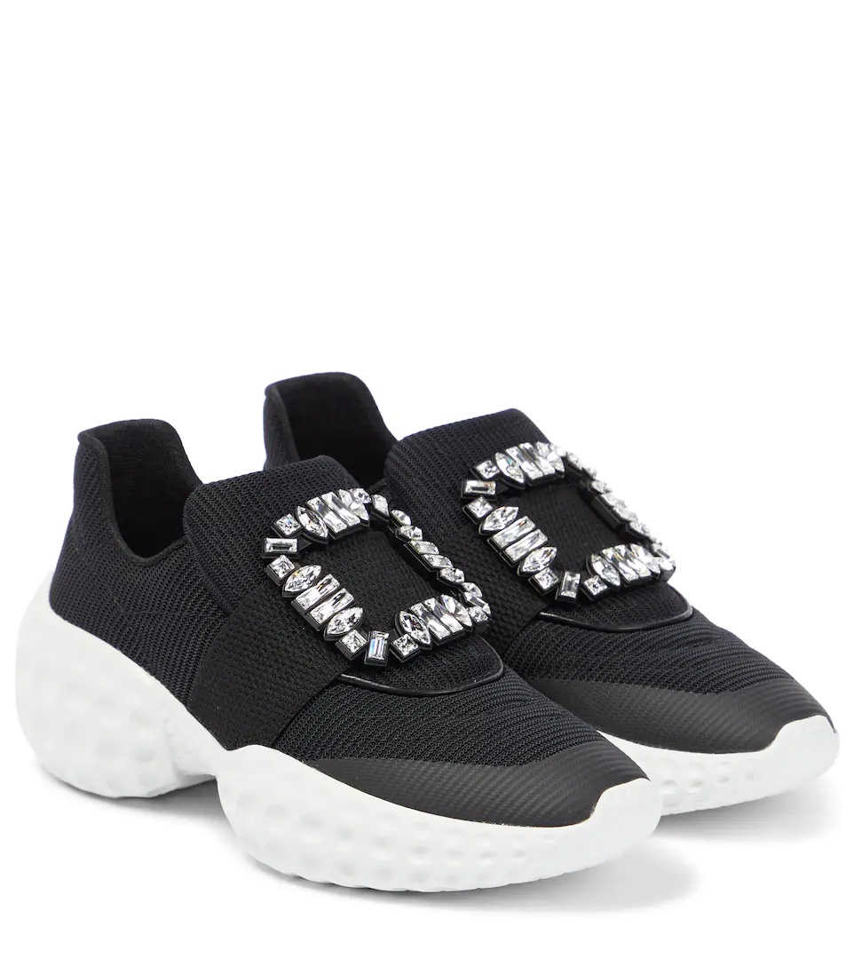 The Viv' Run sneakers from Roger Vivier have mesh uppers and cushioned rubber soles. They're topped with brand-signature crystal-embellished buckles. Product Details - Toe shape: round toe - Trim: leather, crystal - Sole: fabric insole, rubber sole - Comes with a box - Lining: fabric - Made in Italy - Comes with dust bag - Upper: fabric - Item number: P00704132 Size & Fit - Fits slightly large to size - we recommend trying a half size smaller - Stretchy fabric - European sizes - 3cm-1" platform (size EU 38) - 6cm-2.5" wedge heel (size EU 38)