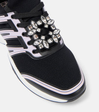 Product Details - Upper: fabric - Lining: fabric - Sole: leather insole, rubber sole - Toe shape: almond toe - Made in Italy - Includes: shoe box, dust bag, extra laces - Designer color name: Nero/ Rosa & Lilac - Closure: lace-up - Details: crystals - Item number: P01020185 Size & Fit - Fits slightly small to size - we recommend trying a half size larger - Stretchy fabric - European sizes - 3cm-1" platform (size EU 38) - 6cm-2.5" wedge heel (size EU 38)