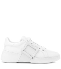 Roger Vivier is known for elevated streetwear styles such as the Viv Skate, which is updated here for the new season with a glossy silver buckle. The sleek white design is made in Italy from smooth white leather and offers a nonchalant sense of cool that you can wear under skirts, jeans, and even tailored suiting. Product Details - Lining: leather - Sole: leather insole, rubber sole - Toe shape: round toe - Upper: leather - Closure: lace-up - Designer color name: Bianco - Made in Italy - Item number: P00394391 Size & Fit - Fits slightly large to size - we recommend trying a half size smaller - European sizes - 3cm-1" platform (size EU 38) - 5,5cm-2" wedge heel (size EU 38)