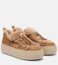 These Viv' Up sneakers from Roger Vivier combine soft shearling and soft suede to create a distinctive style. The pair's lace-up silhouette is complemented by embellished accents on the uppers. Product Details - Upper: shearling, lamb leather (suede) - Lining: shearling - Sole: shearling insole, rubber sole - Color: beige - Toe shape: round toe - Made in Italy - Includes: shoe box, dust bag - Designer color name: S812(Tabacco Ch)+S410 - Item color: beige - Closure: drawstring - Item number: P01108290 Size & Fit - True to size - European sizes - 4,5cm-2" platform - 5,5cm-2" wedge heel