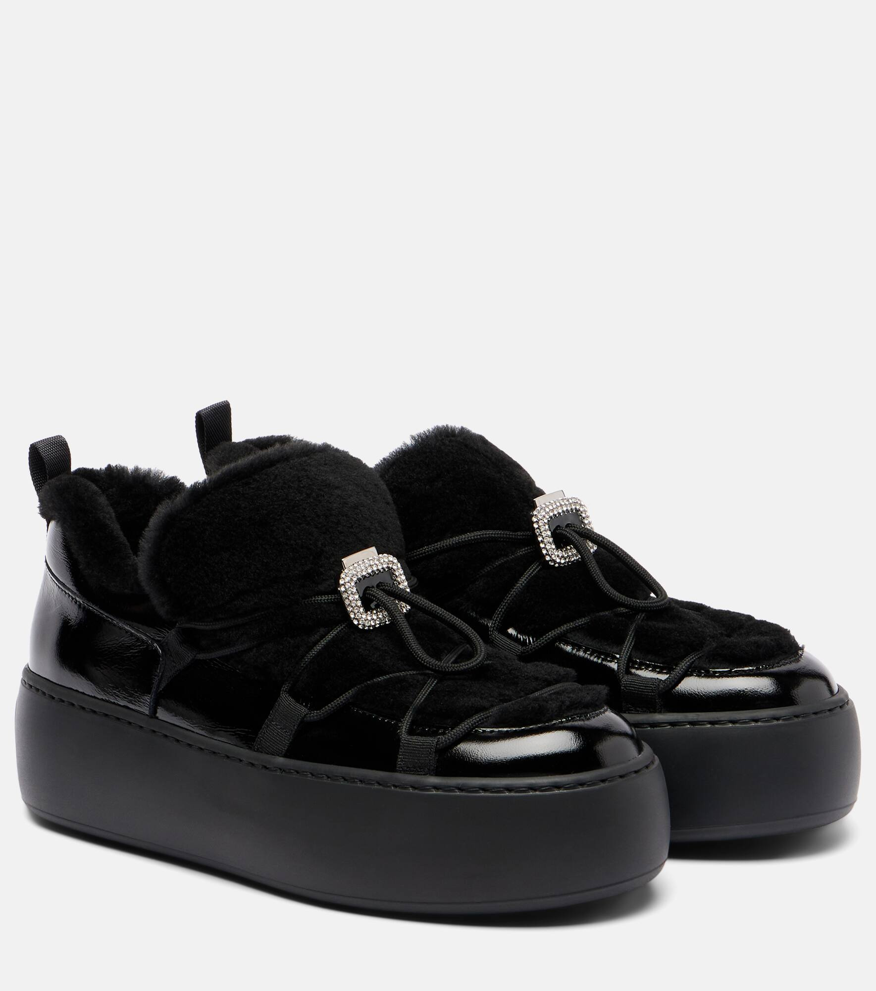 Viv' Up shearling and patent leather sneakers