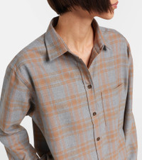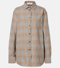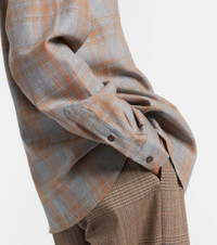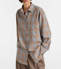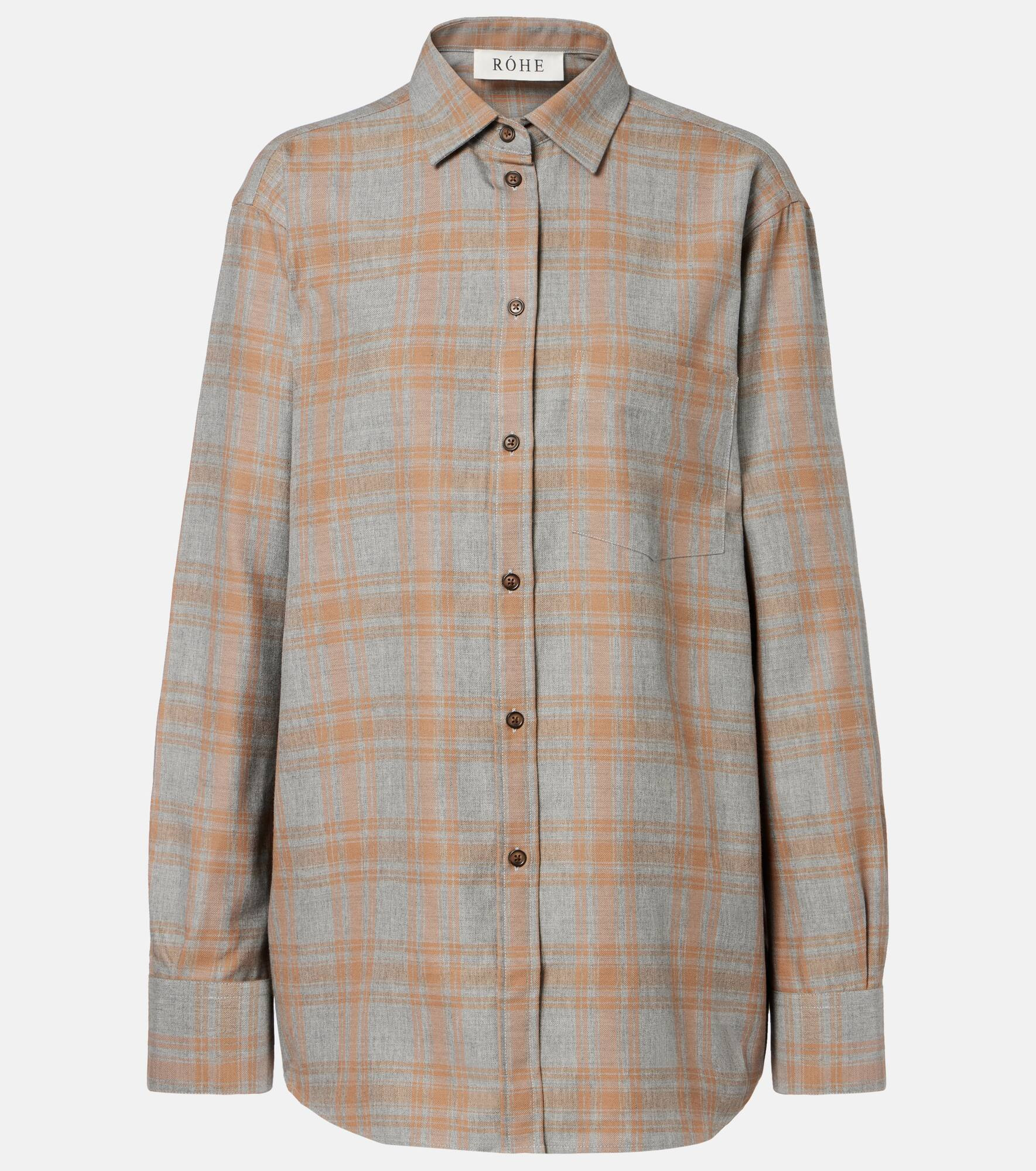 This checked shirt from Rohe features a tailored silhouette with buttoned front closure. The design is complete with a powder-toned checked pattern for a touch of sophistication. Product Details - Material: 54% viscose, 46% wool - Care instructions: dry clean - Made in Portugal - Designer color name: Powder Check - Item color: gray, brown - Closure: buttoned front - Collar: classic (Straight point) - Cuff: buttoned - Item number: P01073397 Size & Fit - True to size - Designed for a loose fit - Non-stretchy fabric - Falls below the hip - The model seen in the picture is 178cm-5'10" and wearing a size FR 34
