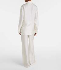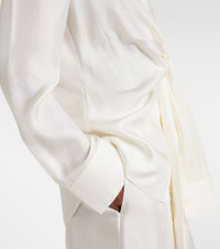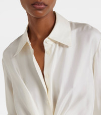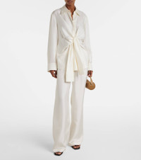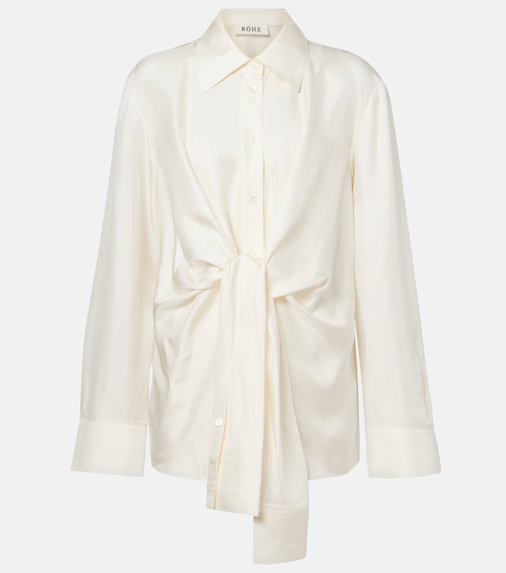 Rohe favors a multifaceted approach to design, infusing every collection with elements of Dutch art and architecture. Cut from featherweight silk satin, this button-down shirt features dramatic draping on the front. Product Details - Material: 100% silk - Care instructions: dry clean - Made in Italy - Designer color name: Cream - Item color: white - Closure: buttoned front, self-ties - Collar: classic (Straight point) - Cuff: one button - Item number: P01073403 Size & Fit - True to size - Dropped shoulders - Designed for a loose fit - Adjustable at the waist - Non-stretchy fabric - Falls below the hip - The model seen in the picture is 178cm-5'10" and wearing a size FR 34
