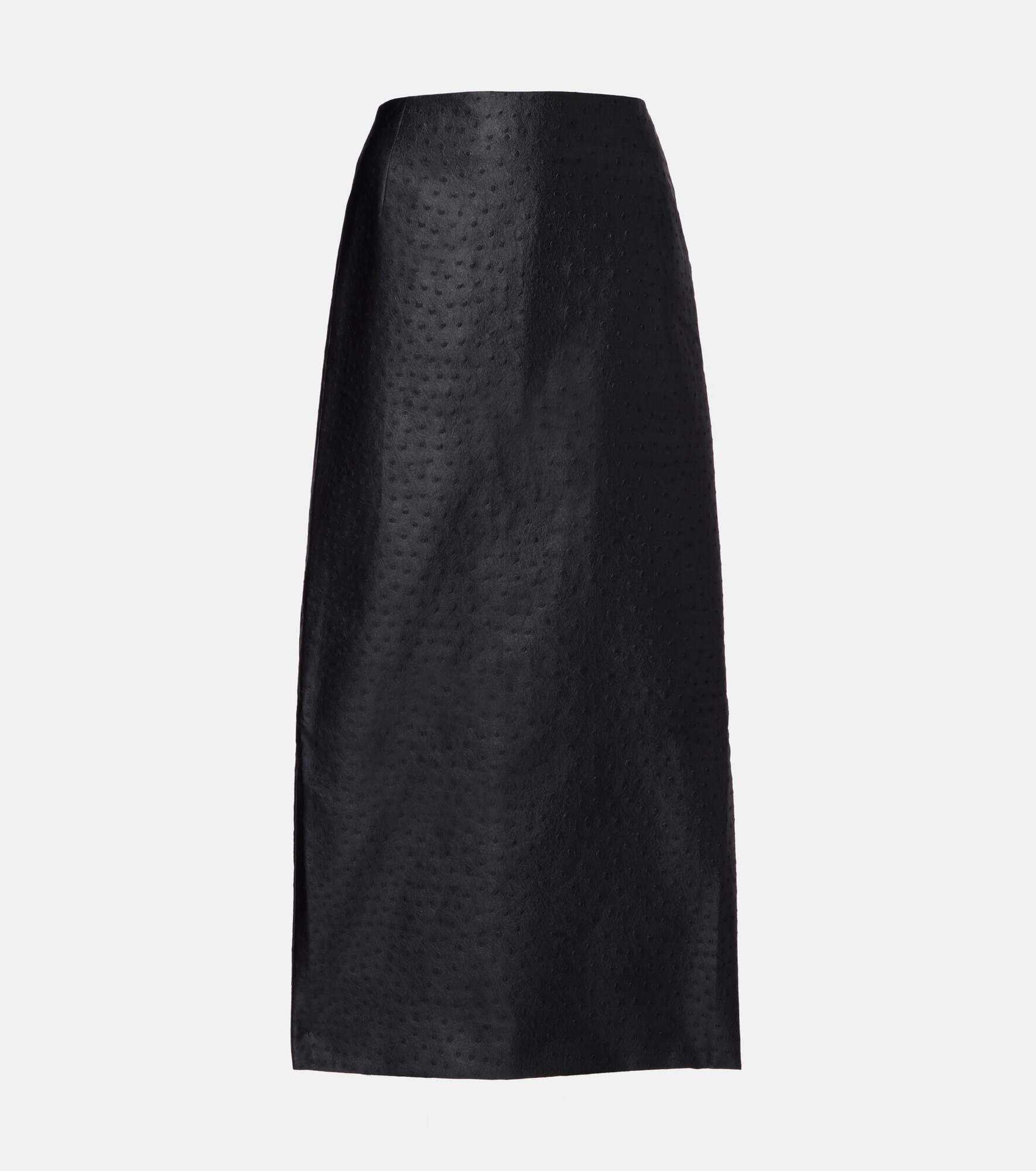 Rohe favors a multifaceted approach to design, infusing every collection with elements of Dutch art and architecture. A prime example, this midi skirt is tailored to a high-rise silhouette and adorned with embossed polka dots. Product Details - Material: 100% polyester - Care instructions: dry clean - Made in Bulgaria - Designer color name: Black - Item color: black - Lining: 100% viscose - Closure: concealed zipper, zipped back - Long vent - Item number: P01103227 Size & Fit - True to size - Non-stretchy fabric - The model seen in the picture is 178cm-5'10" and wearing a size FR 34