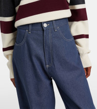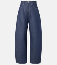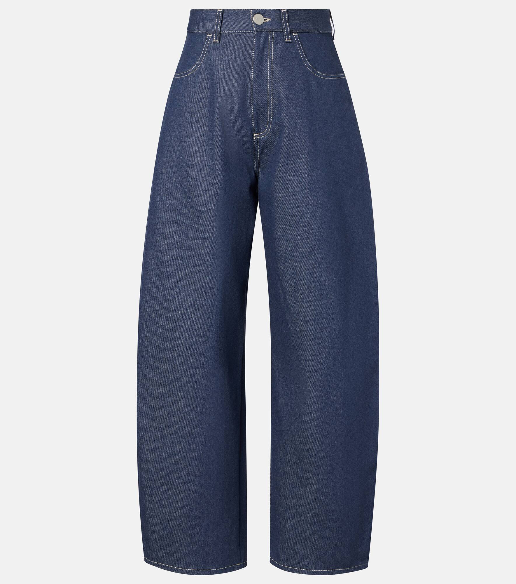 These barrel-leg jeans from Rohe are crafted in a deep raw blue rash and feature the distinctive curved wid-leg silhouette. The design is complete with a high-rise fit and branded metal button. Product Details - Material: 100% cotton - Care instructions: machine wash at 30 degrees - Made in Italy - Designer color name: Raw Denim - Item color: blue - Hardware color: silver - Closure: zip and button fastening - Pockets: slant pockets, back pockets - Belt loops - Item number: P01073433 Size & Fit - True to size - Non-stretchy fabric - Tapered leg - High-rise - The model seen in the picture is 178cm-5'10" and wearing a size FR 34