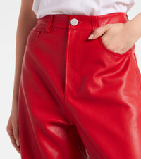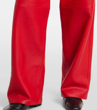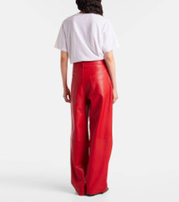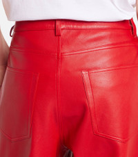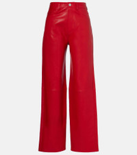 Rohe favors a multifaceted approach to design, infusing every collection with elements of Dutch art and architecture. Stitched from panels of buttery soft nappa leather, these pants sit high on the hips and feature a classic wide-leg silhouette. Product Details - Material: 100% lamb leather - Care instructions: specialist clean - Made in Turkey - Designer color name: Rosso - Item color: red - Pocket lining: 65% polyester, 35% cotton - Hardware color: silver - Belt loops - Pockets: five pockets - Closure: zipper fly, button fastening - Contains non-textile parts of animal origin - Item number: P01103218 Size & Fit - True to size - Fits large to size - we recommend trying one size smaller - Non-stretchy fabric - Wide-leg - The model seen in the picture is 178cm-5'10" and wearing a size FR 34