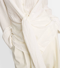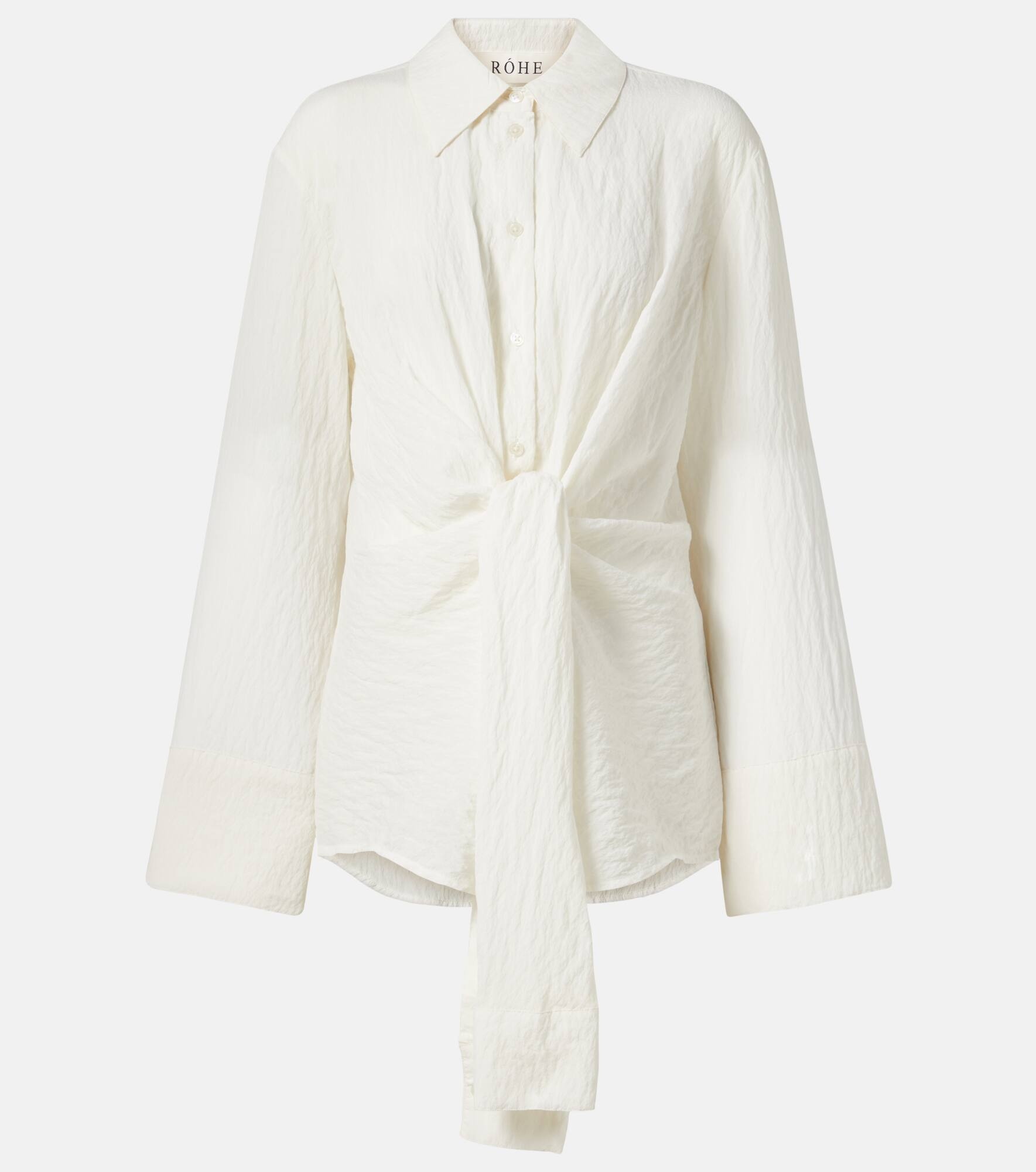 Look to Rohe for trend-defying pieces, designed in the heart of Amsterdam. This shirt is crafted from hammered silk-blend satin and features a twisted knot detail in front. Product Details - Material: 77% silk, 23% nylon - Care instructions: do not wash - Made in India - Designer color name: Off White - Item color: white - Closure: buttoned front - Item number: P01062410 Size & Fit - True to size - Cinched waist - Adjustable at the waist - Non-stretchy fabric - Falls below the hip - The model seen in the picture is 178cm-5'10" and wearing a size FR 36